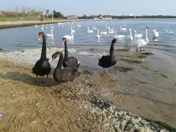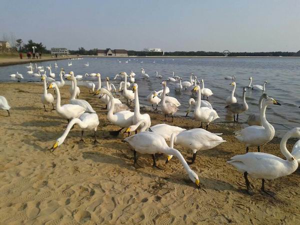 在山东荣城天鹅湖旁(张英武图片、彭占明配诗)