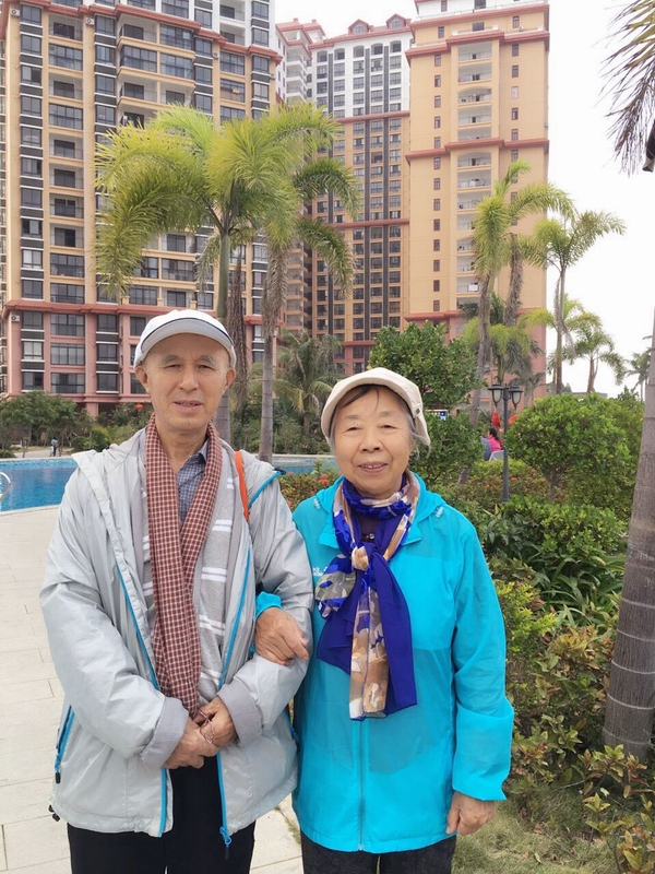 祝宝林、周芳翠夫妇和大女儿在海南(祝宝林供稿)