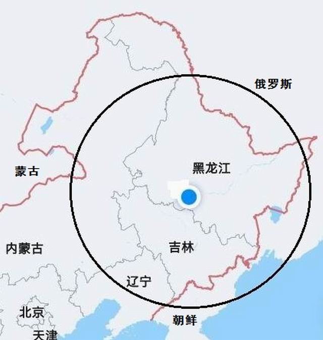 这是中国东北三省附近的地图。图中,蓝色园点代表“我地”;大园圈是以“我地”为中心,以571公里为半径的园。按现有数值天气预报水平分辨率的测试结果,对“我地”的数值天气预报都可与园圈内各地的数值天气预报互换,均不影响预报效果。即,“我地”的天气预报可以代表园圈内各地的天气预报。