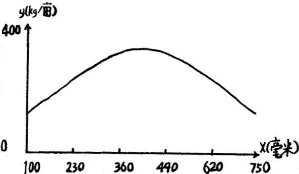 该式是一个有最大值的正态回归模型,当X=428.6毫米时,Y取得最大值322.2千克/亩。产量曲线见图2。