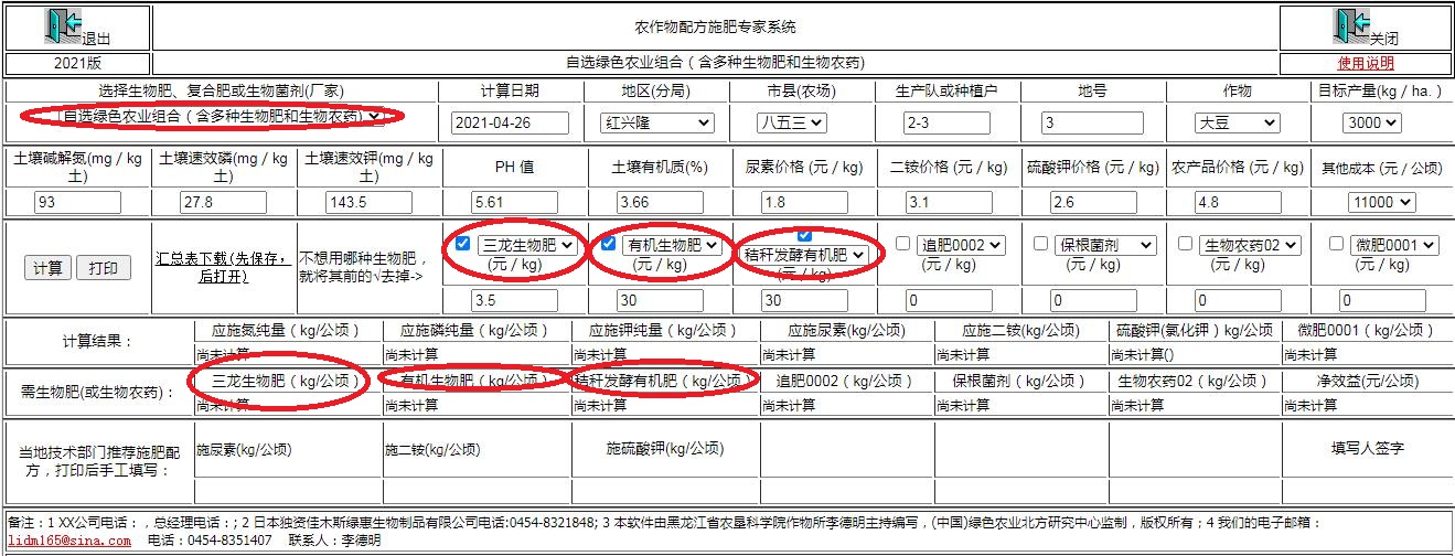 图3:选择使用一个厂家生物有机肥时的主控页面