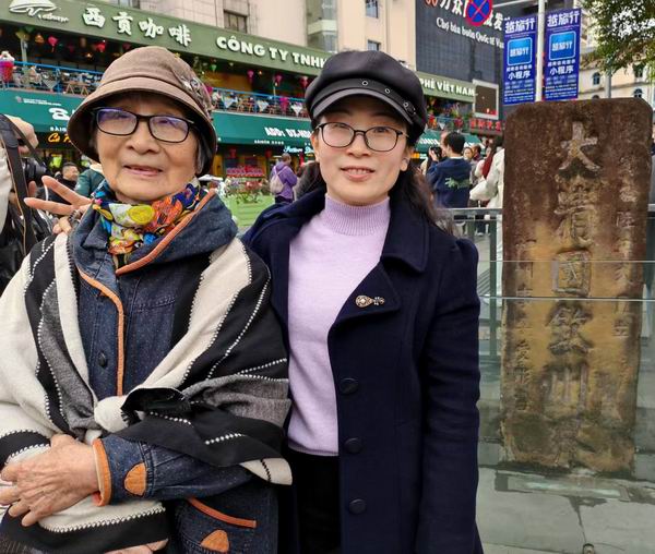 朱廉与女儿何晓彤在中越边界东兴市大清国所立界碑处。