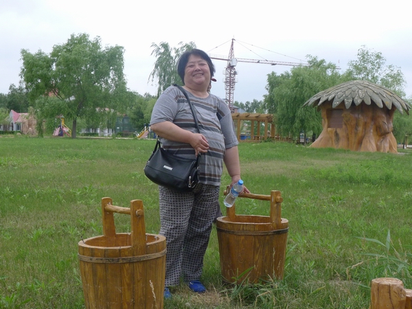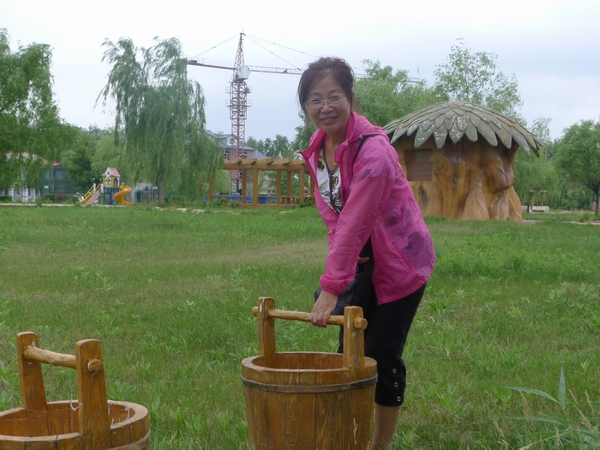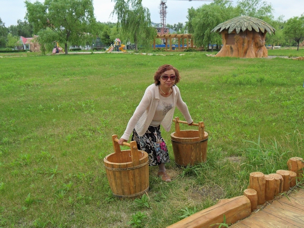 看,我能拎起两桶。