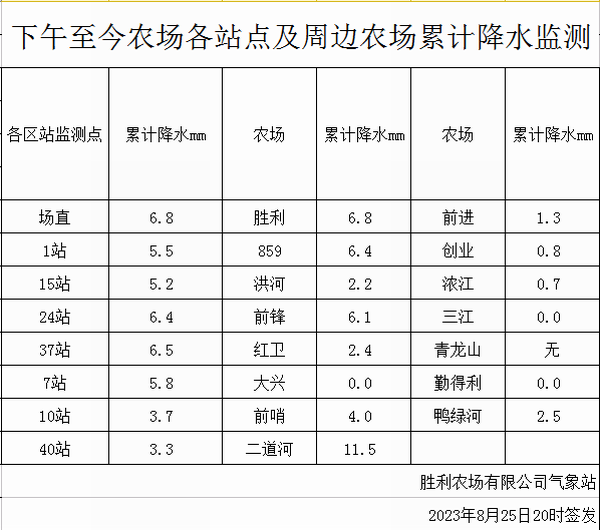 胜利农场气象站发布的降水监测