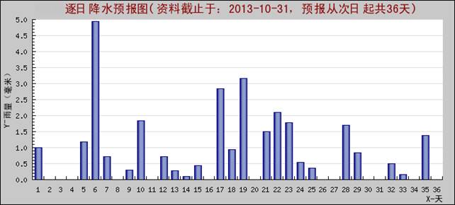 图-25是前哨农场气象站2010年4月1-14日逐日降水预报图,横坐标代表日期;纵坐标代表日降水量的预报值。由预报图可以看出,2010年4月的前两周(1-14日),应有以下三场雨雪天气过程: