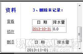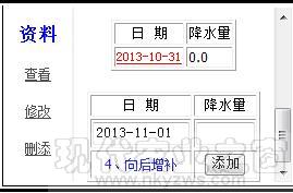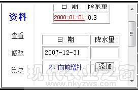 是向后增补功能(见图-7),在那个日期右侧降水量框里,添上该日降水量,点击“添加”按钮,就完成了向后增补了一天降水量数据。