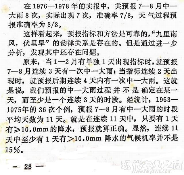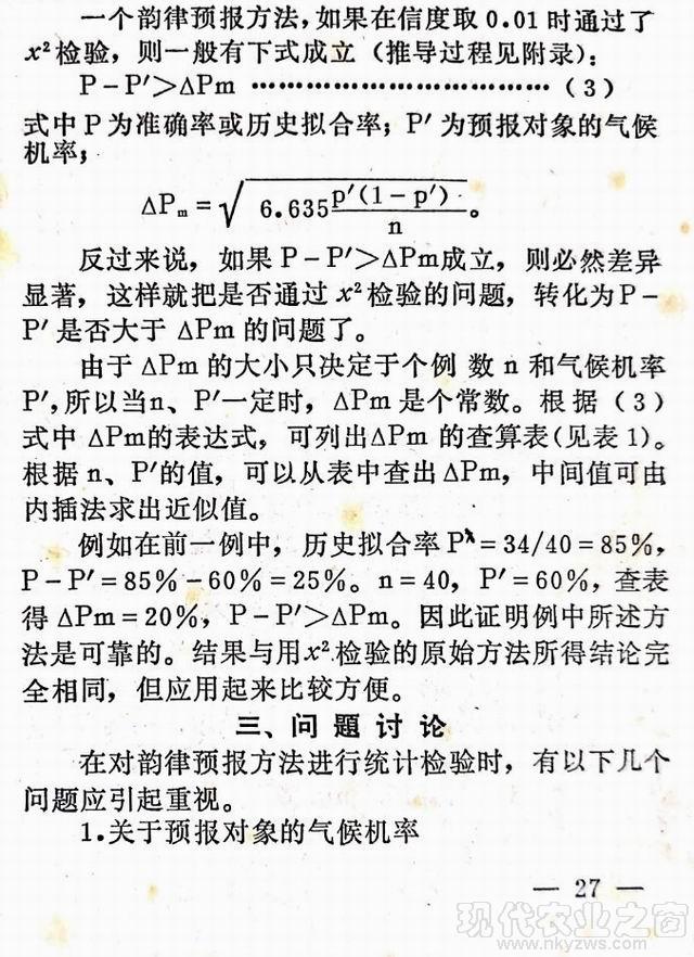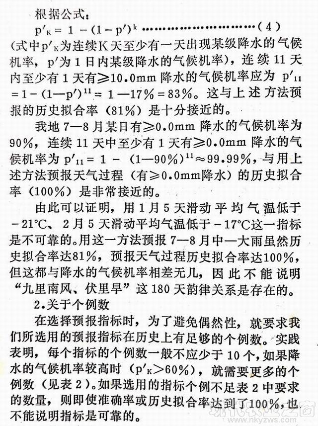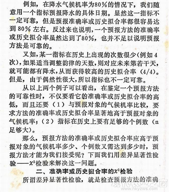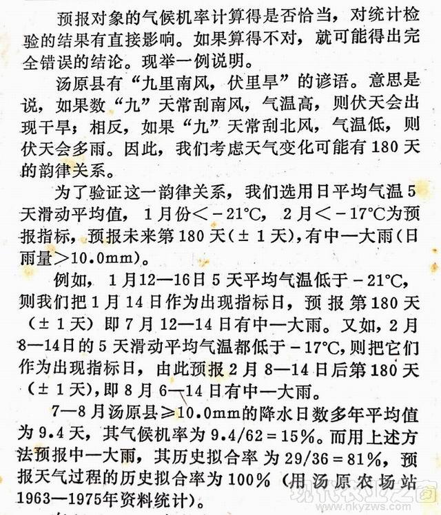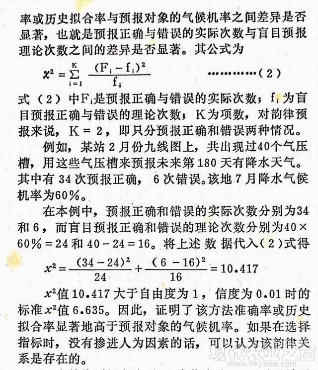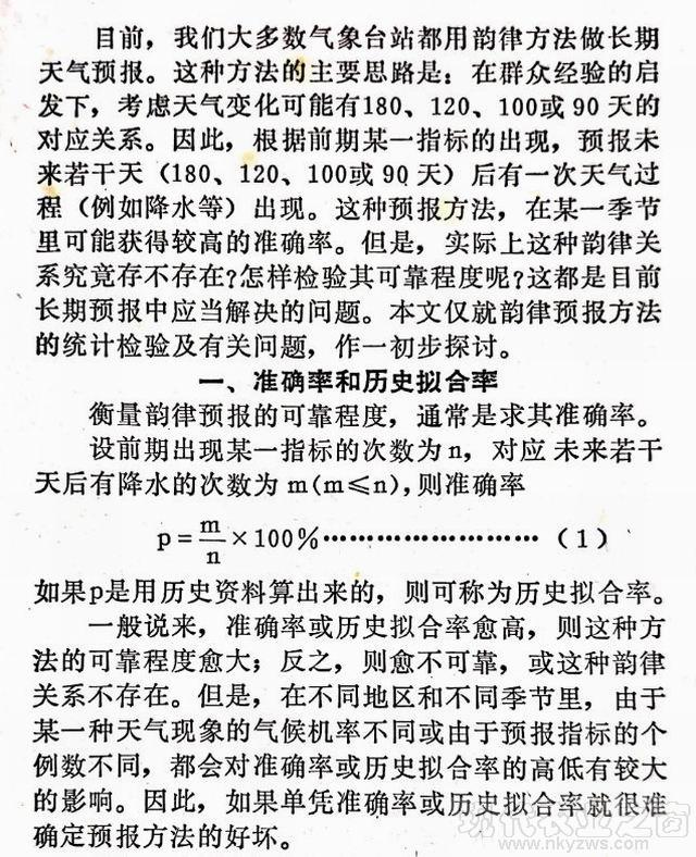 编者按:本文四十年前刊登于《气象》月刊1979年8期。该文作者针对当时气象领域流行的韵律预报,提出了一种统计检验方法,以便判断各种韵律预报方法的可靠性。利用这一统计检验方法证明了,所谓‘大风百日有大雨’、‘八月十五云遮月,正月十五雪打灯’等民谚不能用来制作长期降水过程预报。鉴于该文所介绍的方法对当前数值天气预报有效期的检验仍有使用价值和指导意义,特予转载。