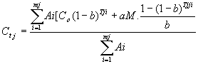 式中,b,t,Co,a,M和Ct的意义与(1)式相同。其中C1和Co均用占土壤重量的百分数表示。用(2)式估算农田土壤有机质的变化,其误差不受土壤矿化率b大小的影响。当b<0.02时,由于1-b=e-b,故(2)式与(1)式等价。